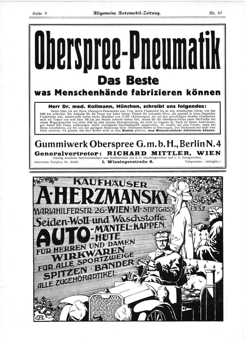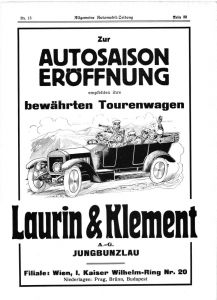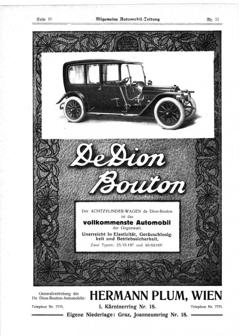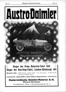 Galeria inseratów prasowych - zbiór reklam automobilowych z lat 1900 -1914Galerie » Galeria inseratów prasowych - zbiór reklam automobilowych z lat 1900 -1914Reprodukcje reklam automobilowych z tygodnika "Allgemeine Automobil-Zeitung".CechyźródłoAustriacka Biblioteka Narodowa