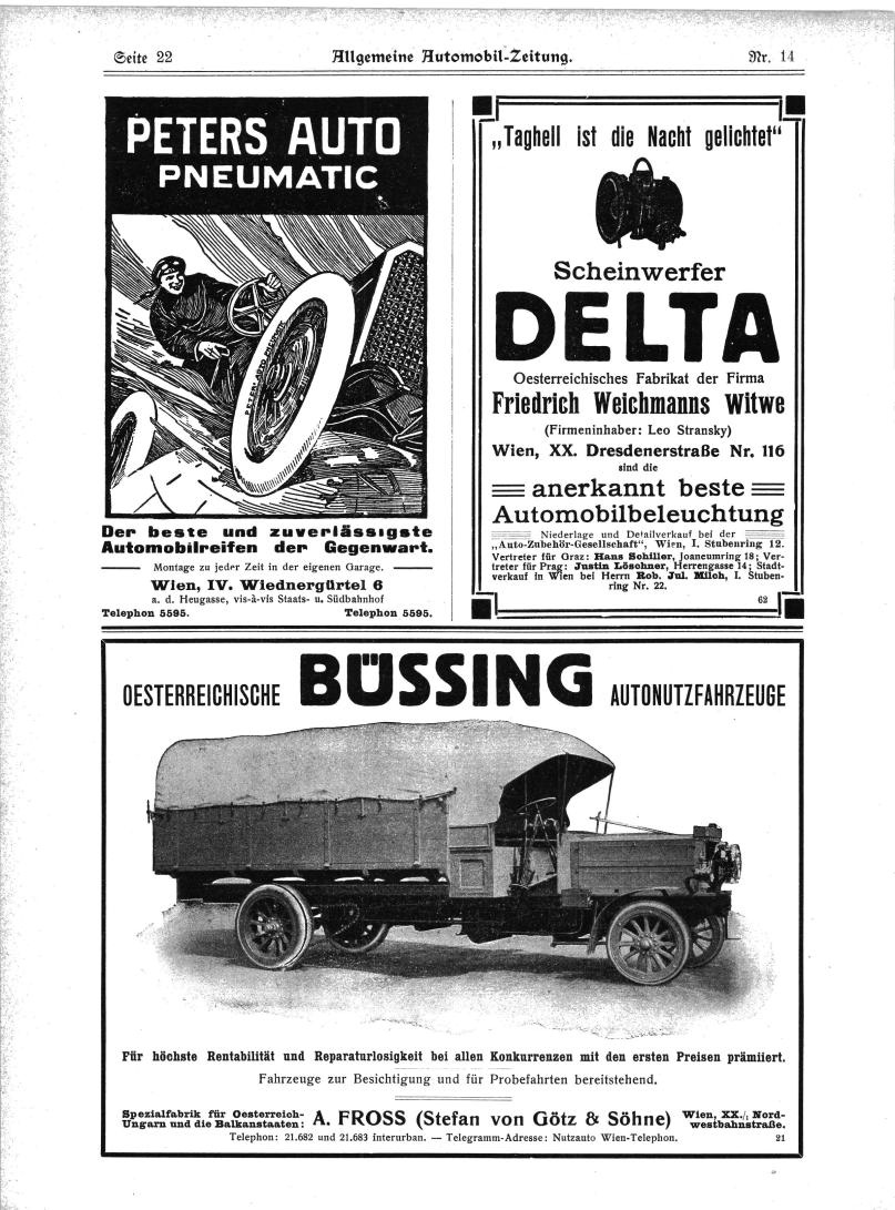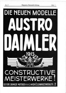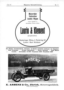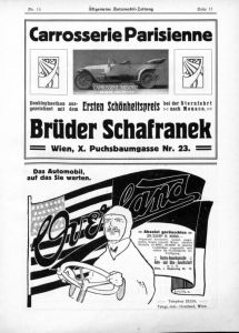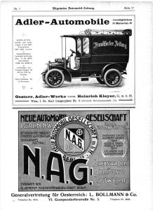 Galeria inseratów prasowych - zbiór reklam automobilowych z lat 1900 -1914Galerie » Galeria inseratów prasowych - zbiór reklam automobilowych z lat 1900 -1914Reprodukcje reklam automobilowych z tygodnika "Allgemeine Automobil-Zeitung".CechyźródłoAustriacka Biblioteka Narodowa